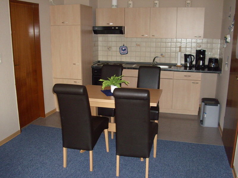 - Kombiniertes Wohn,- und Esszimmer mit komplett eingerichteter Küchenzeile incl. Backofen und Ceranfeld.